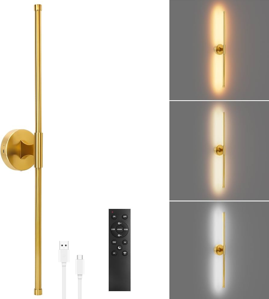31.5" Battery Operated Wall Sconce, Rechargeable Wall Sconce with Remote Control, Wireless Wall L...