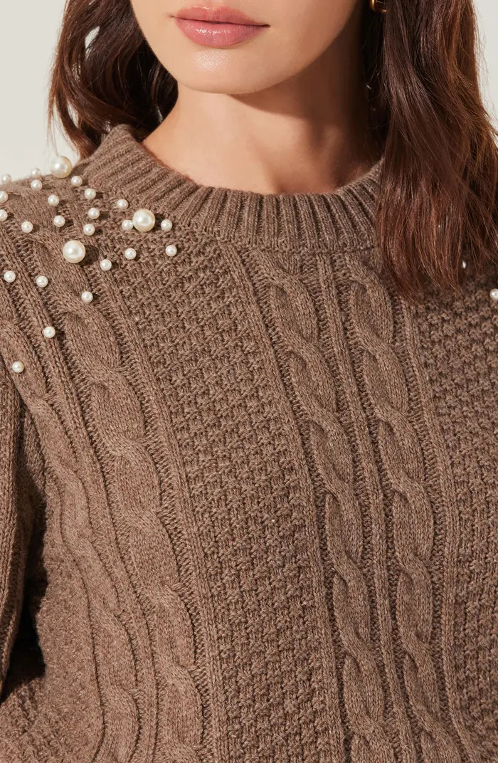 Imitation Pearl Detail Cable Sweater