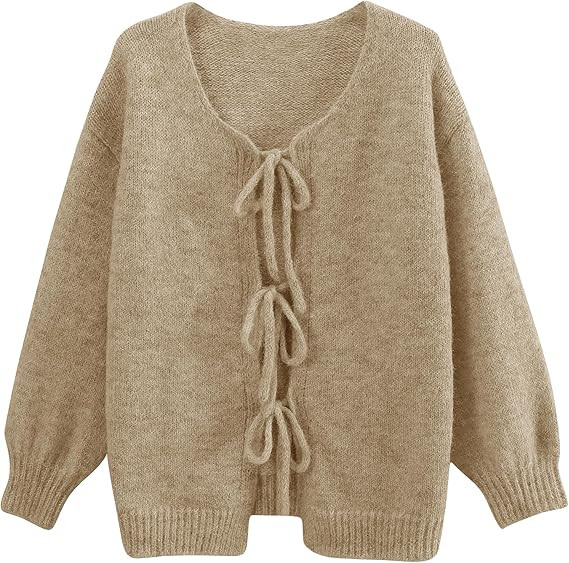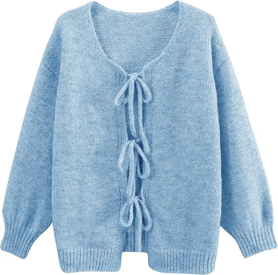 Lumister Cute Oversized Cardigan Sweaters for Women Y2K Long Sleeve V Neck Bow Tie Front Cadigan ...