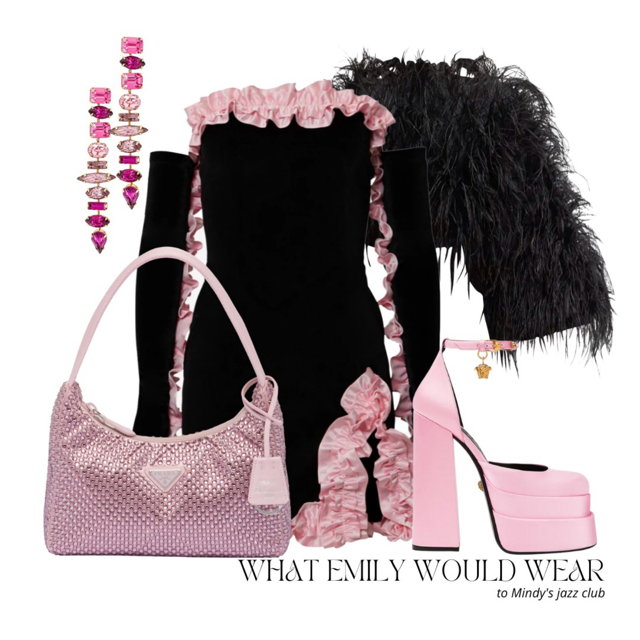 Mimi Mini Dress & Gloves - Black / Pink | Wolf & Badger (US)