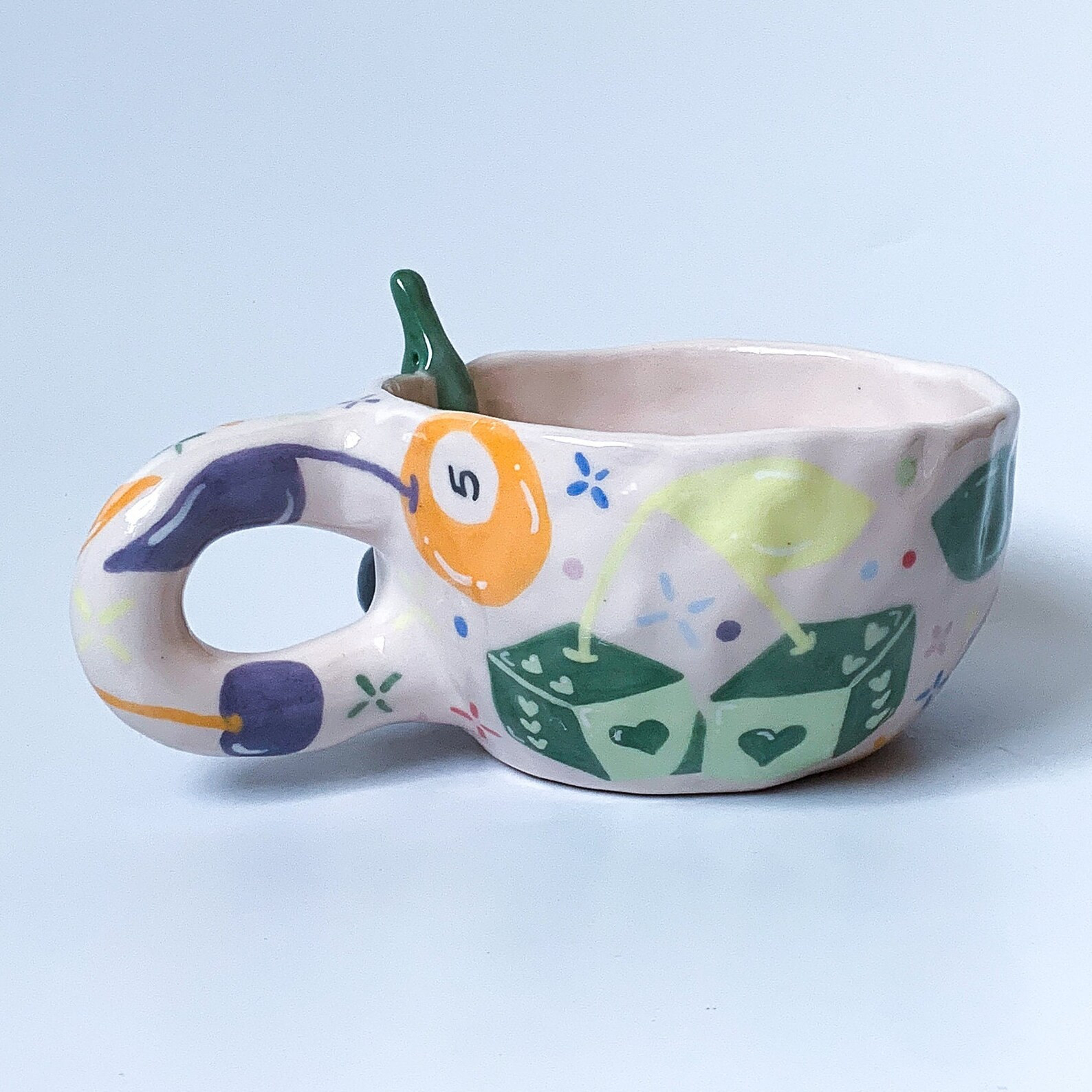 Cherry Bomb Handmade an Hand painted Ceramic Mug, Aesthetic Coffee Mug, Creative Wide Mug, Gift f...