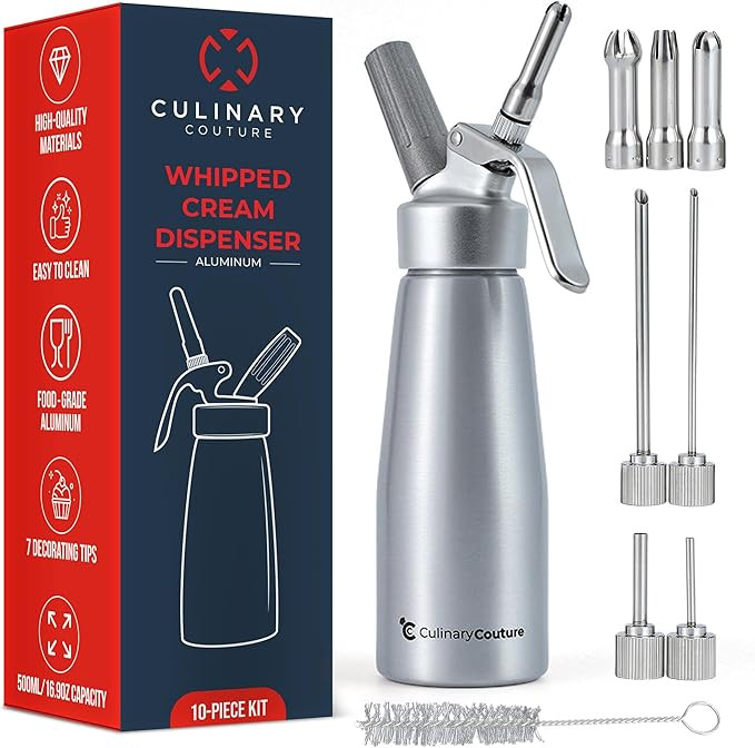 Culinary Couture Professional Whipped-Cream Dispenser - Aluminum Cream Whipper, 7 Various Stainle...