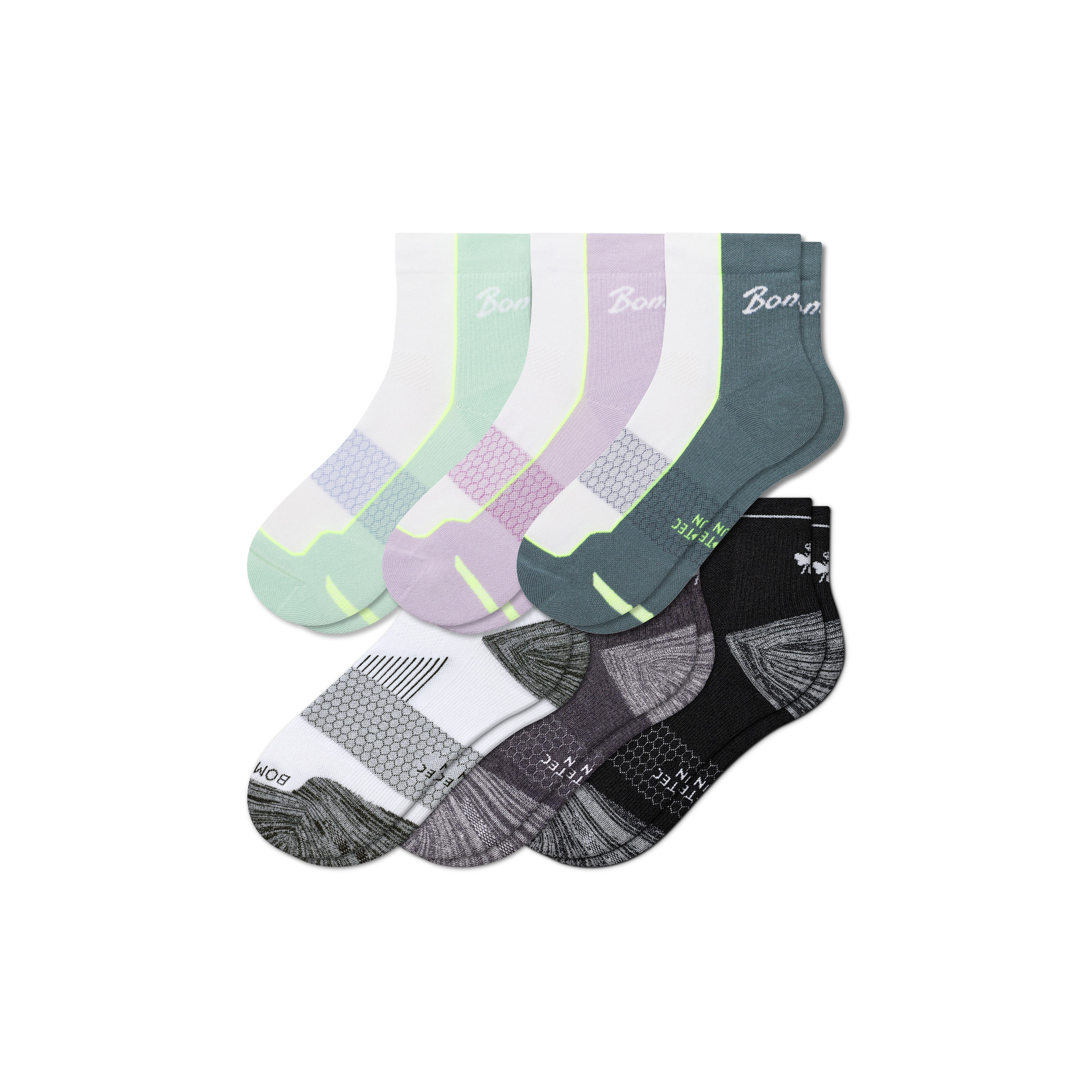 Women's Running Quarter Sock 6-Pack - Foam Green Multi Mix - Large - Cotton Blend - Bombas