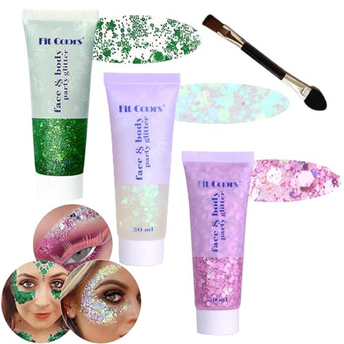 Body Glitter Face Glitter Gel: Singer Concerts Disco Festival Rave Accessories Face Glitter Makeup 150ml Chunky Sequins Mermaid Face Body Hair Glitter Gel (Green&White&Pink)
