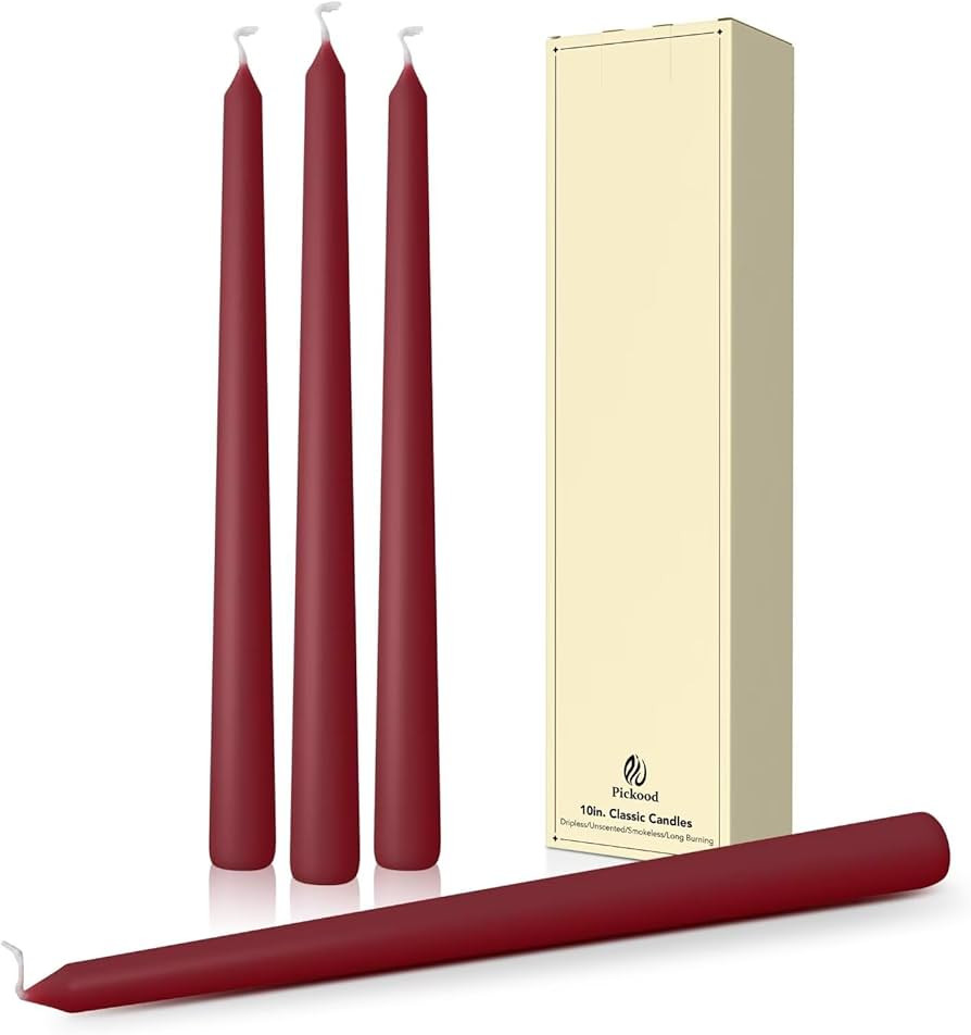10-Inch Tall Dripless Taper Candles Set of 4 - Dark Red Tapered Candles, Perfect for Christmas - ...