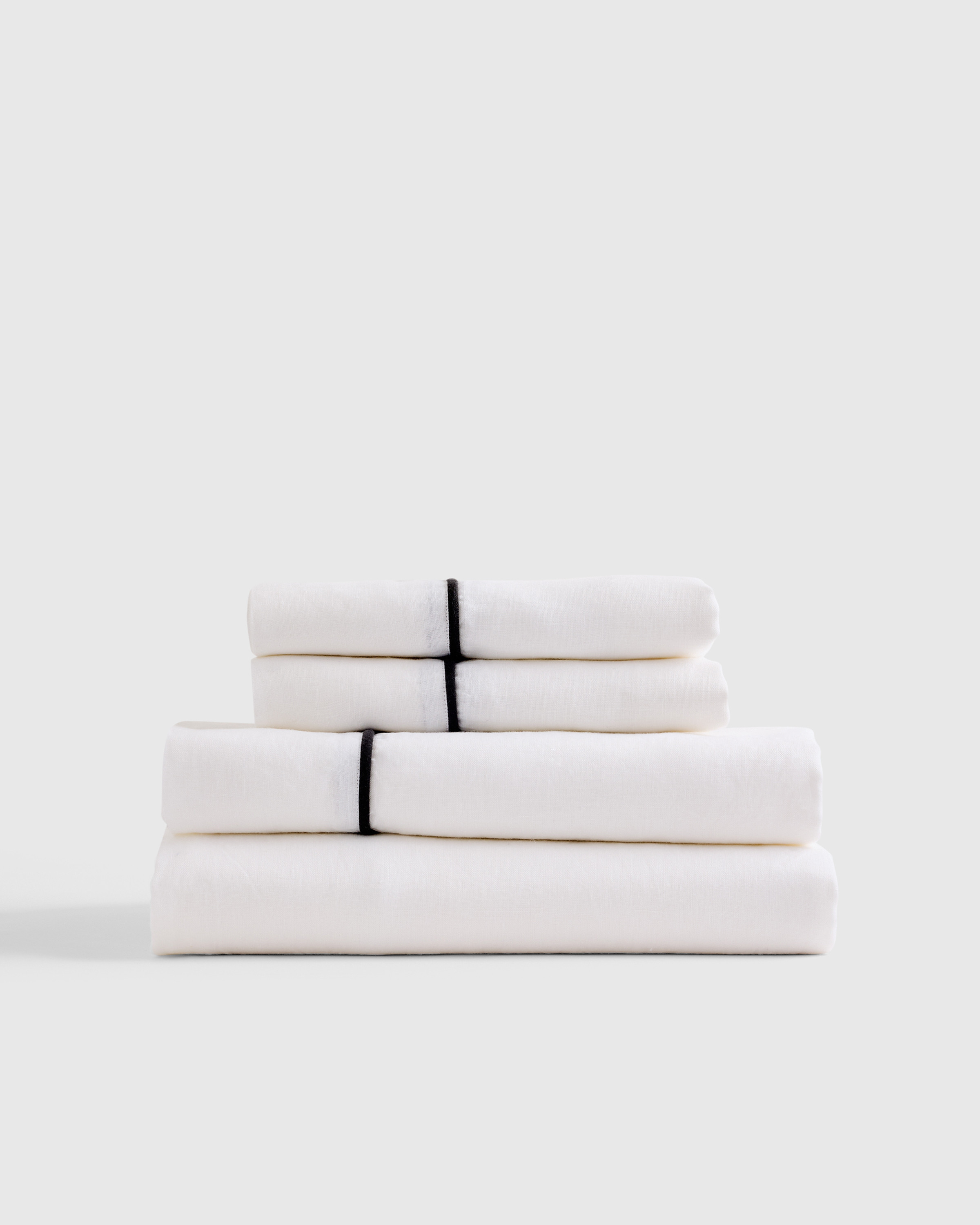 Quince | European Linen Piped Sheet Set in White/Black, Size Full