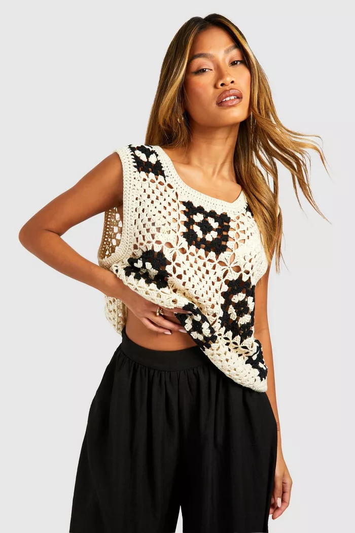 Premium Patchwork Monochrome Crochet Top