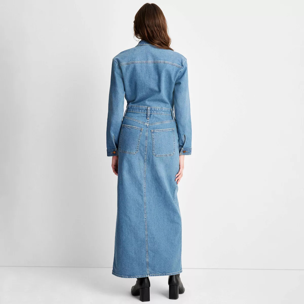 Women's Long Sleeve Denim Maxi Shirtdress - Universal Thread™ Medium Wash 10
