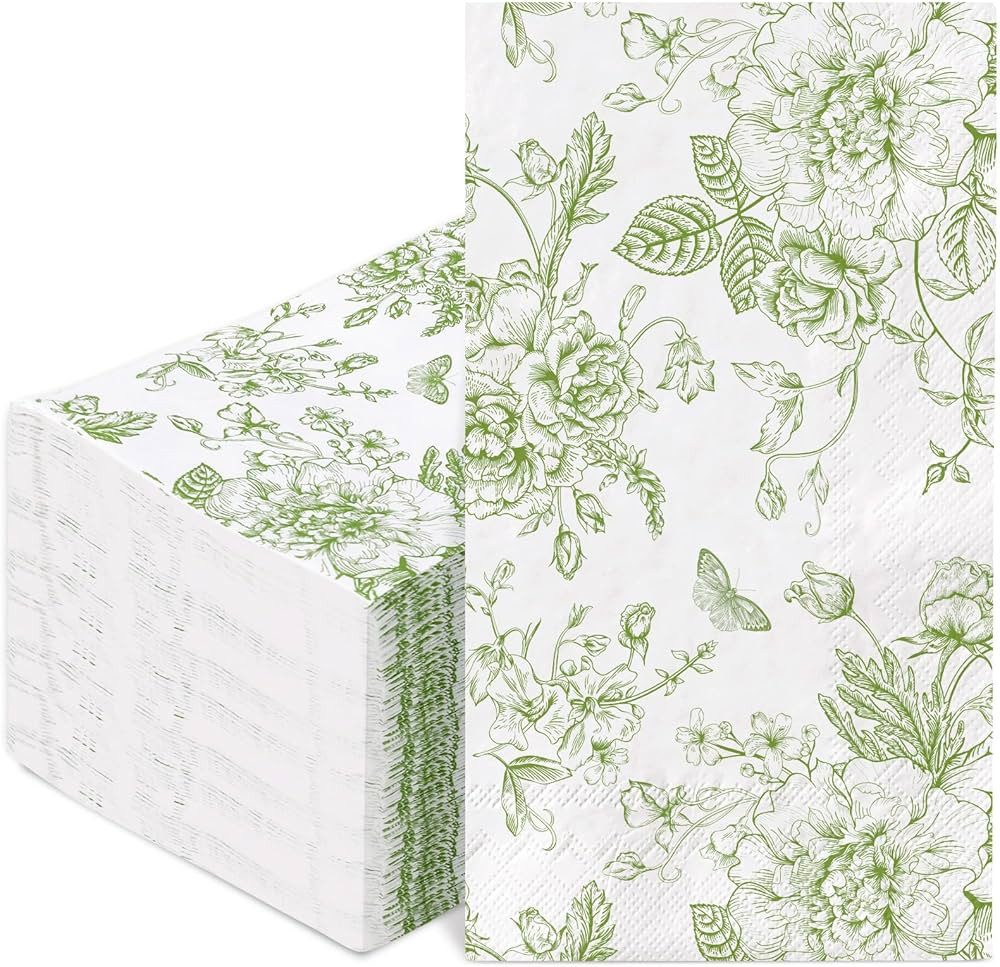 AnyDesign 100Pcs Floral Guest Napkins Disposable Green Wildflower Paper Napkins Green Flower Dinn...