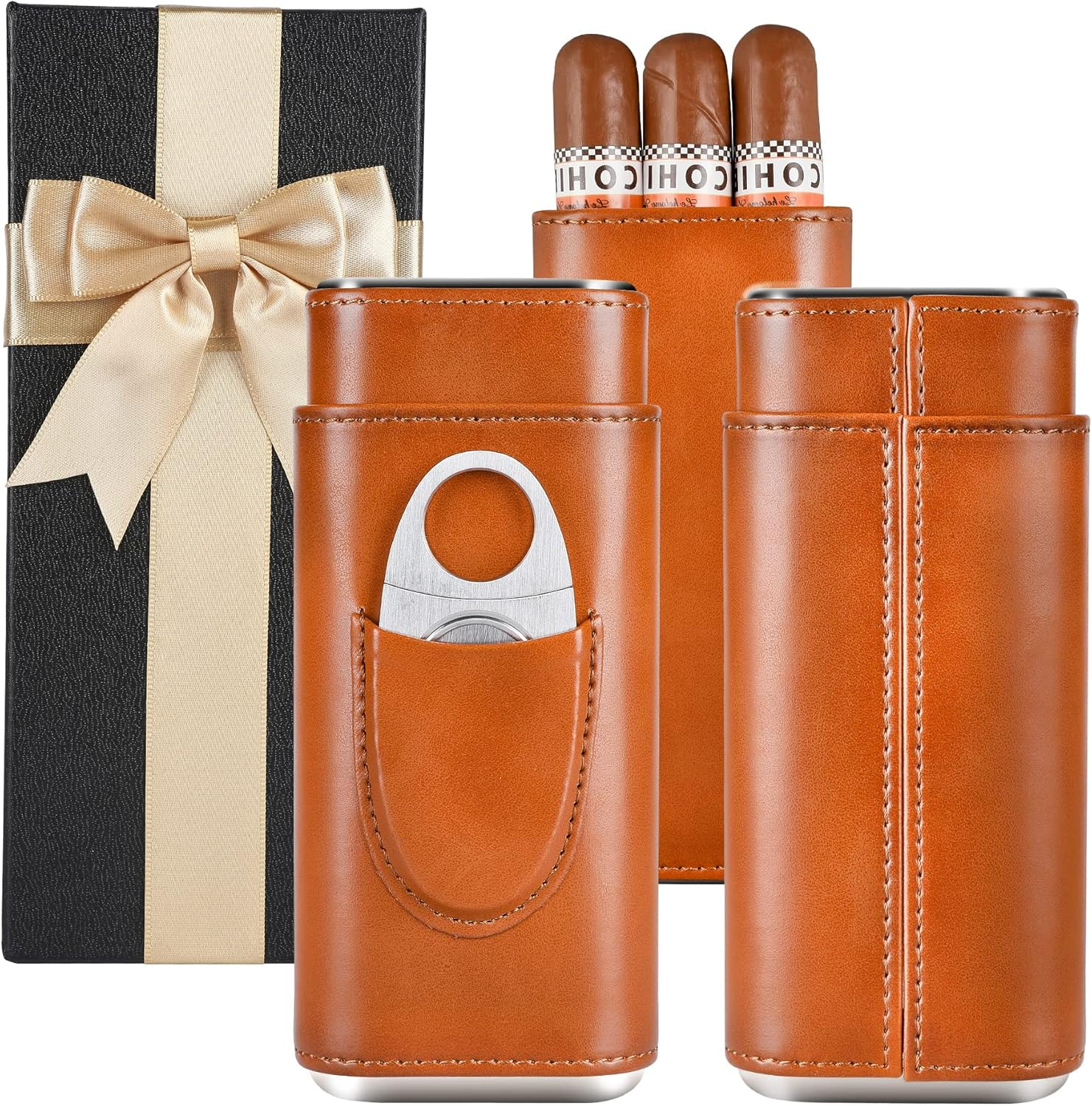 Shyvala Cigar Case with Cigar Cutter ,Pouch and Gift Box for men, Travel Cagar Case humidor ,Ciga...