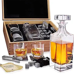 Whiskey Decanter Gift Set by Royal Reserve | Husband Birthday Gifts Artisan Crafted Chilling Rock...