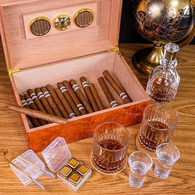 Luenmook Piano Paint Cedar Box,20-50 Capacity with Double Humidifers,Contains Whiskey Gift Set,Gr...