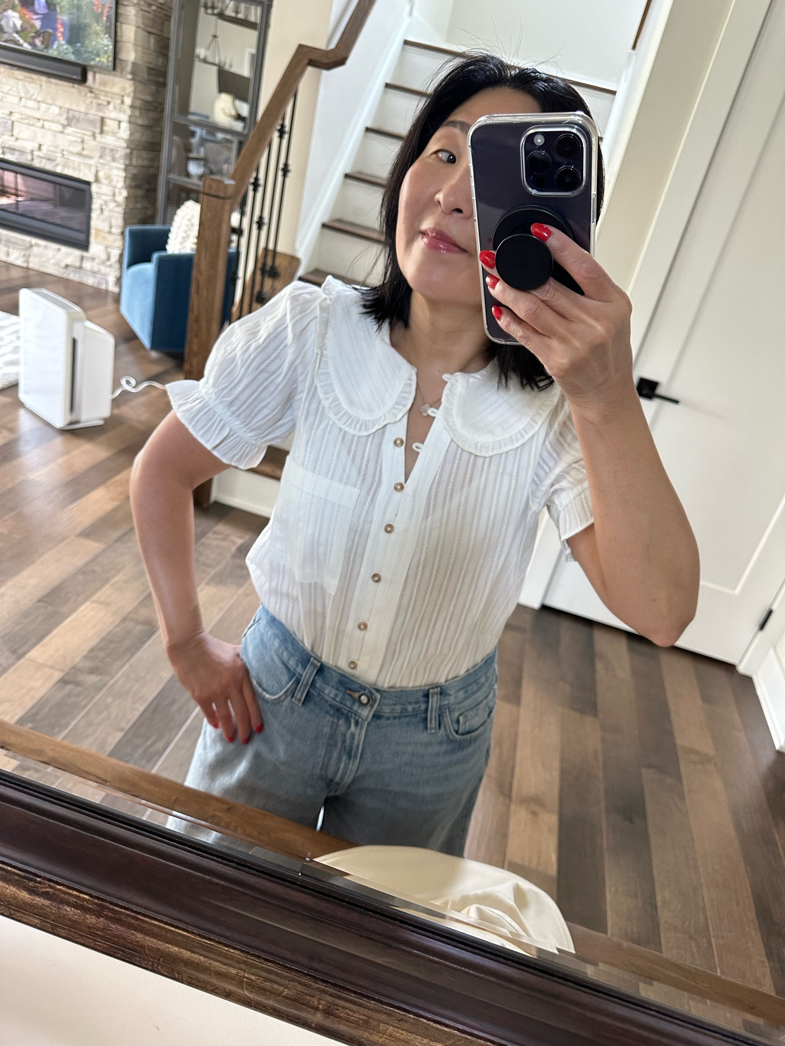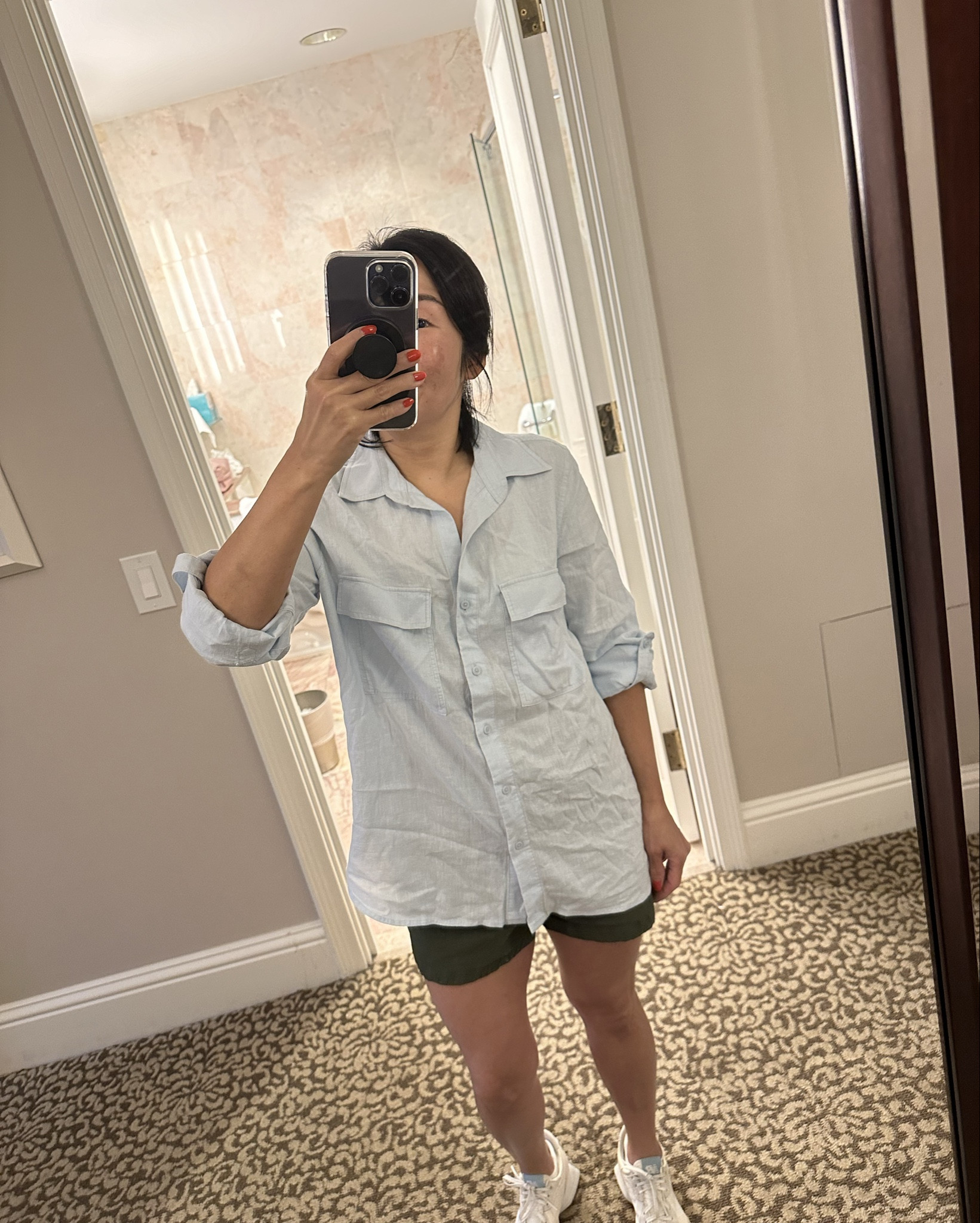 Love this button down shirt! Runs large .. I’m wearing an XXS