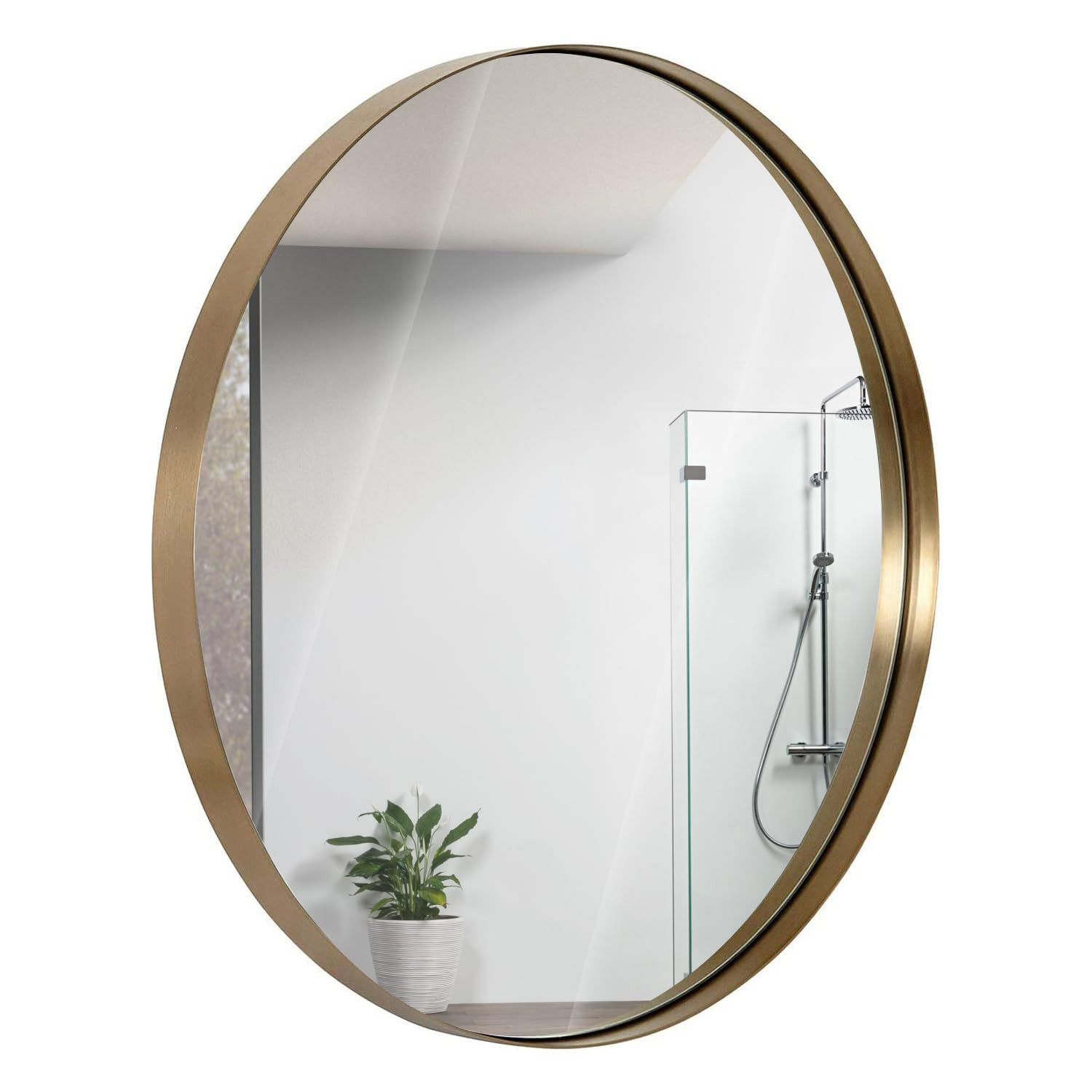 Hamilton Hills 35 Inch Round Bathroom Mirror - Brushed Gold Metal Frame - Elegant Wall Mounted fo...