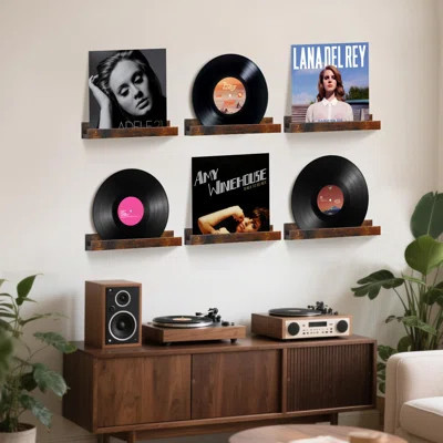 Set of 6 Wooden Vinyl Record Wall Display Shelves, 12-Inch Floating Record Holder
