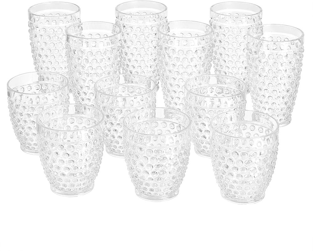 Amazon Basics 12-Piece Tritan Plastic drinkware Set - Hobnail Highball and Double Old Fashioned, ...