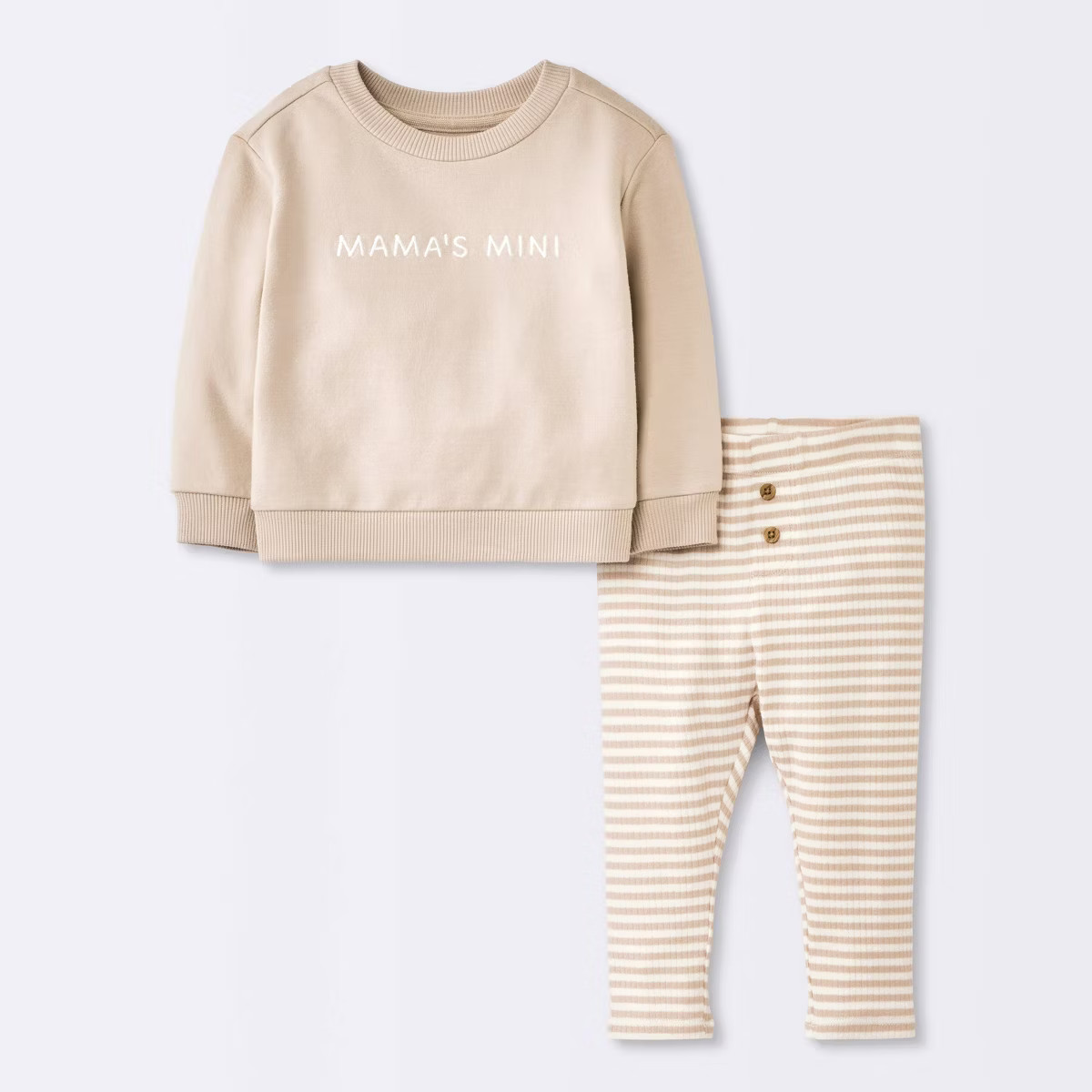 Baby Boys' 2pc Mama's Mini Embroidered Sweatshirt Set - Cloud Island™ Tan