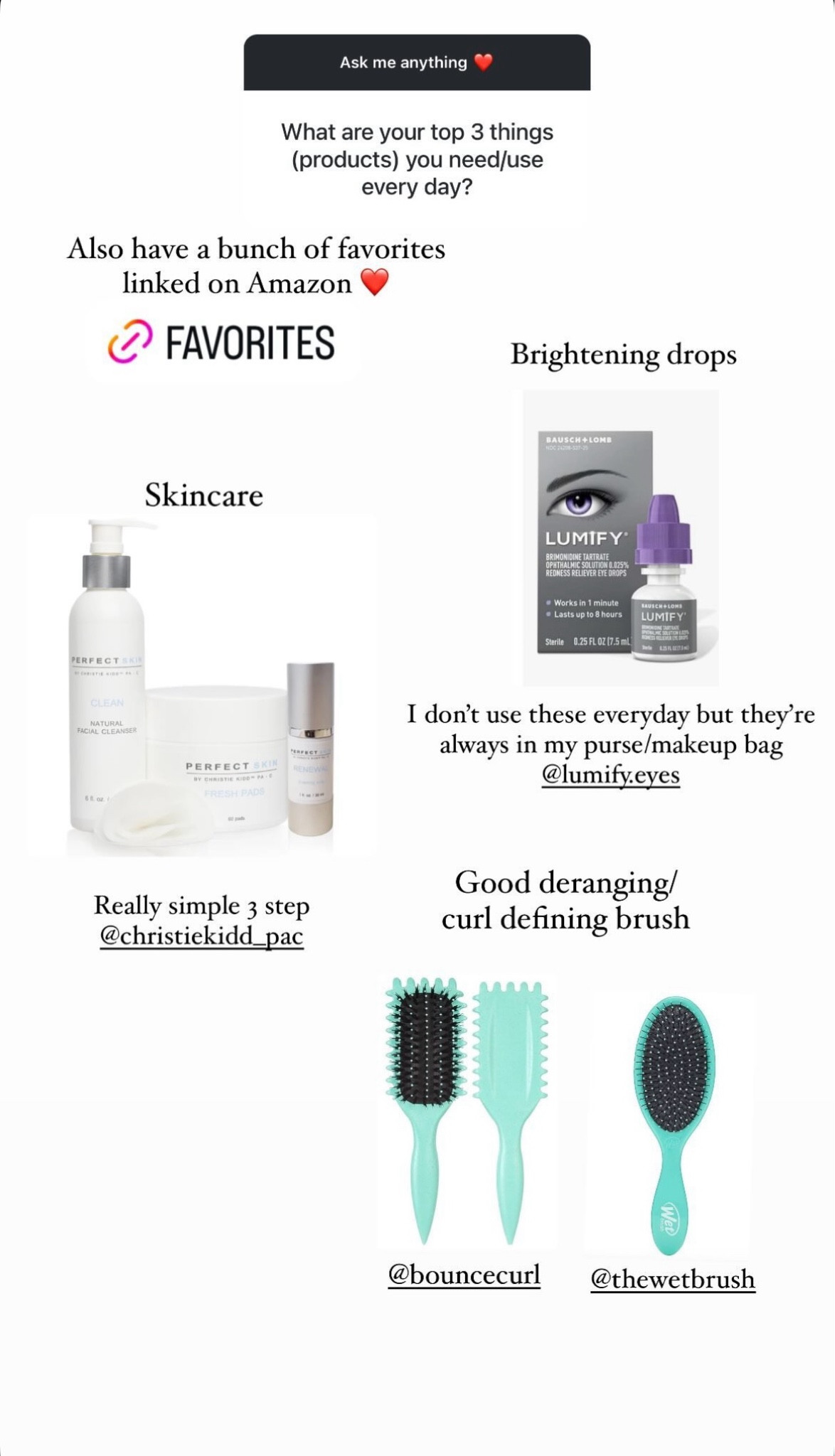 The Alice and Olivia vegan leather pants are the ones I wear every weekend. The barefoot dreams robe is what got me into robes. The Westmin Atelier highlighter is my favorite piece of makeup. The lumify eye drops are a must in life.