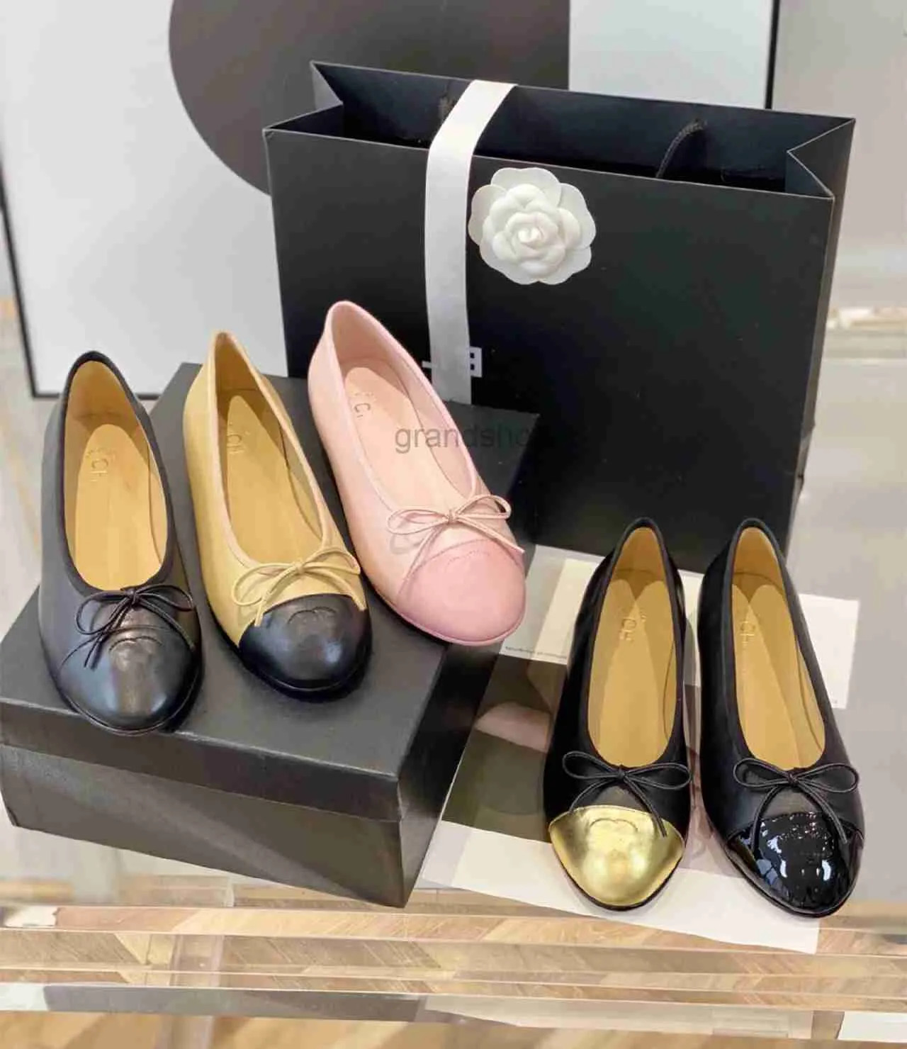 designer shoes Paris Brand designer Black Ballet Flats Shoes Women Spring Quilted Genuine Leather...