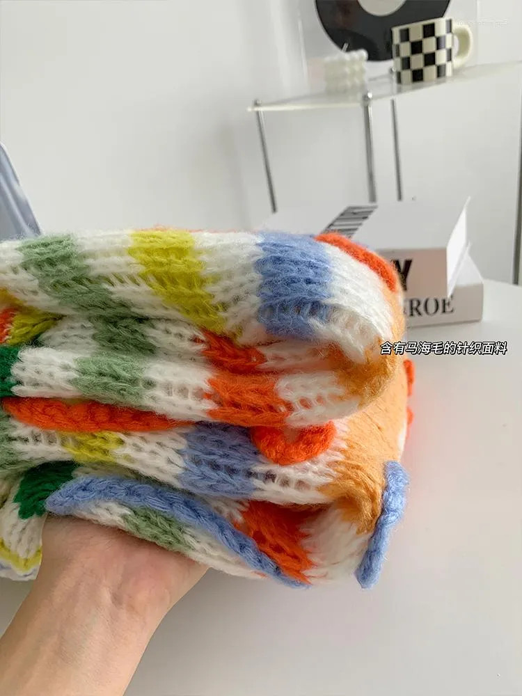 Women's Sweaters Long Sleev Mohair Vintage Sweater Woman Winter 2023 Crewneck Wool Rainbow Stripe...