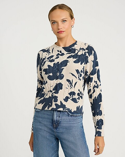 Cable Knit Floral Crew Neck Sweater