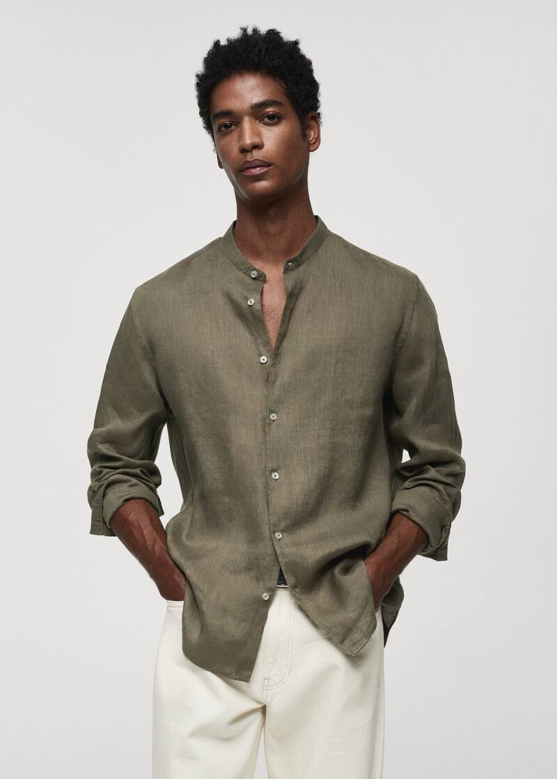 100% linen Mao collar shirt