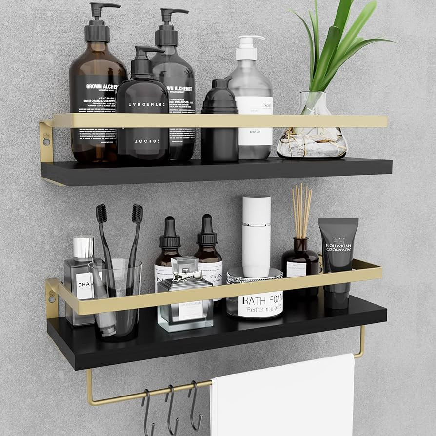 MZF Home Decor Floating Shelves, Wall Shelves with Towel Bar/Hooks, Bathroom Wall Decor, Floating...