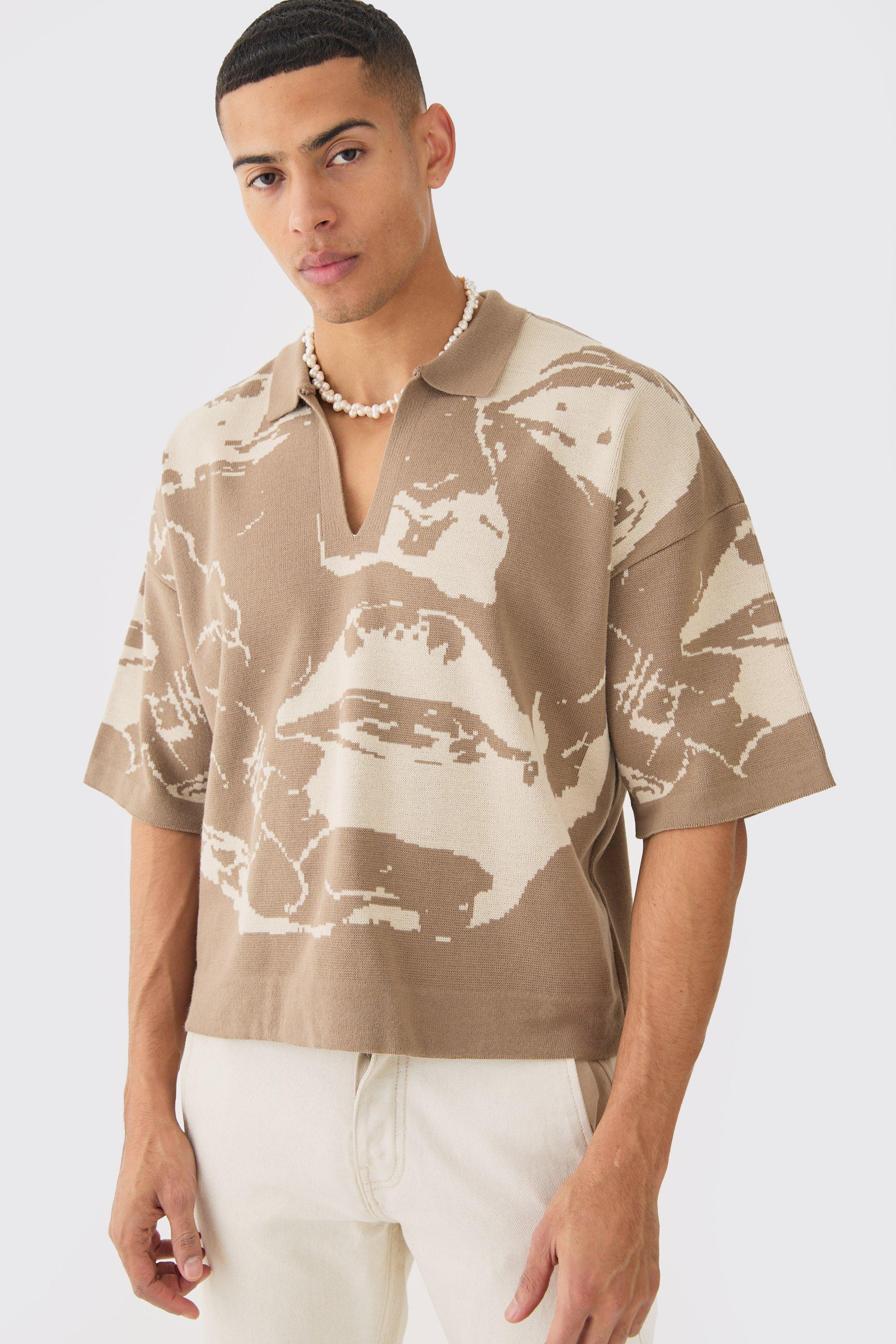 Oversized Boxy Line Drawing Knitted Polo
