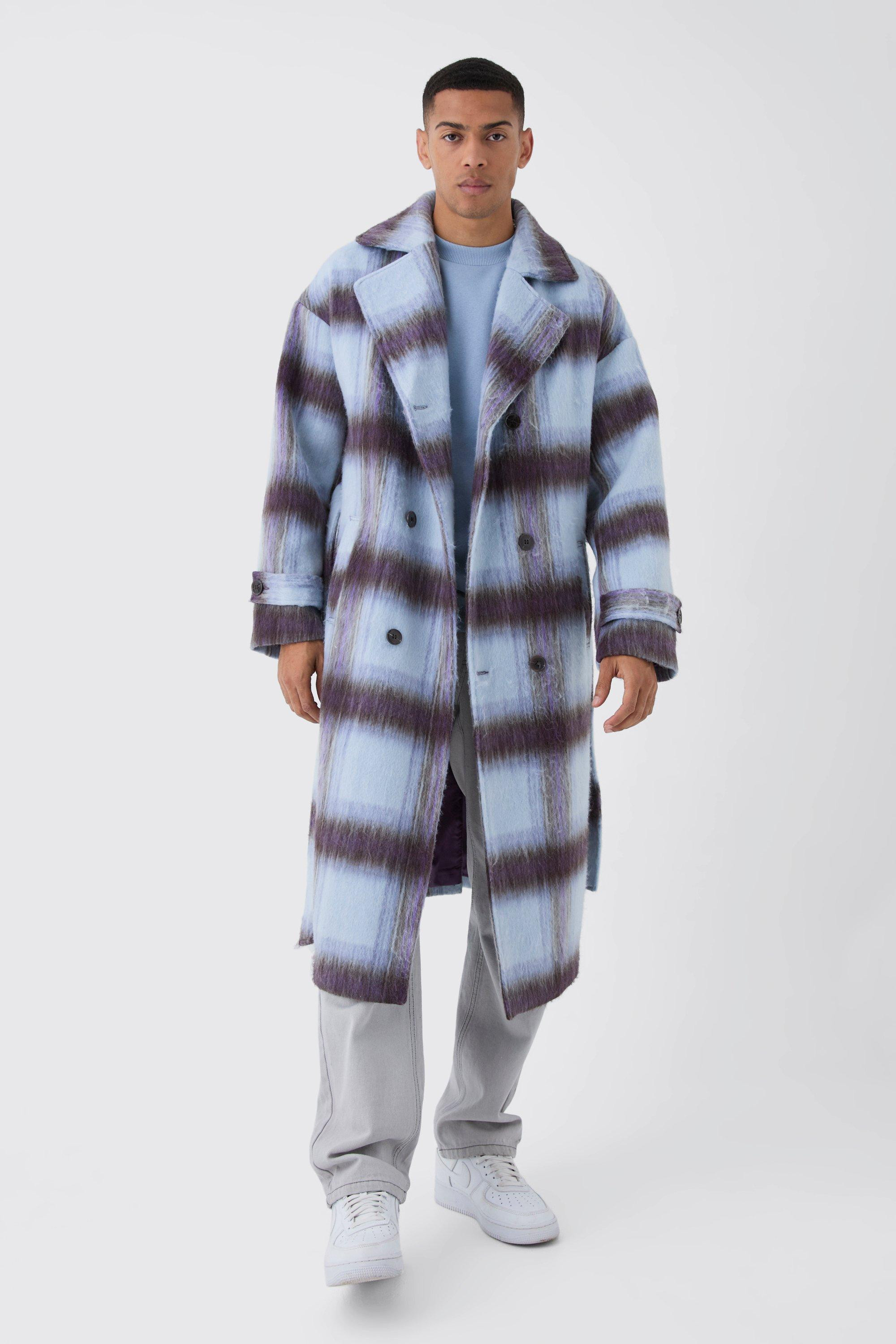 Oversized Double Breasted Brushed Check Overcoat In Lilac