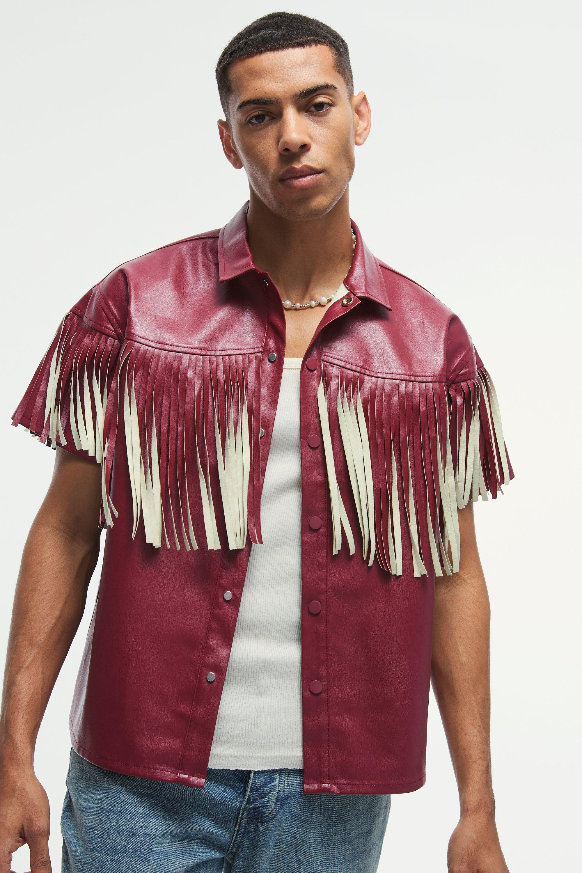 PU Oversized Boxy Fringe Shirt