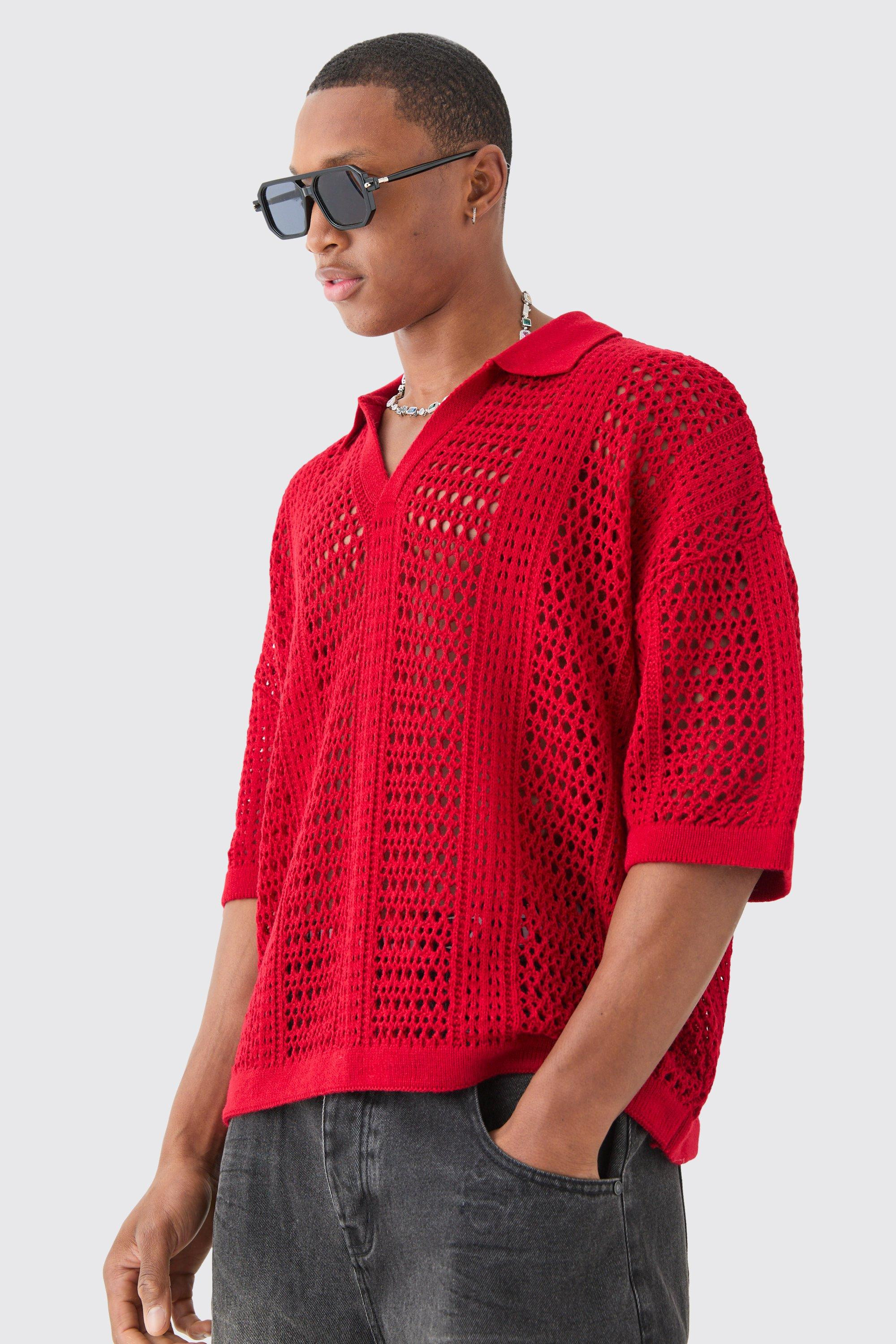 Oversized V Neck Open Stitch Knitted Polo
