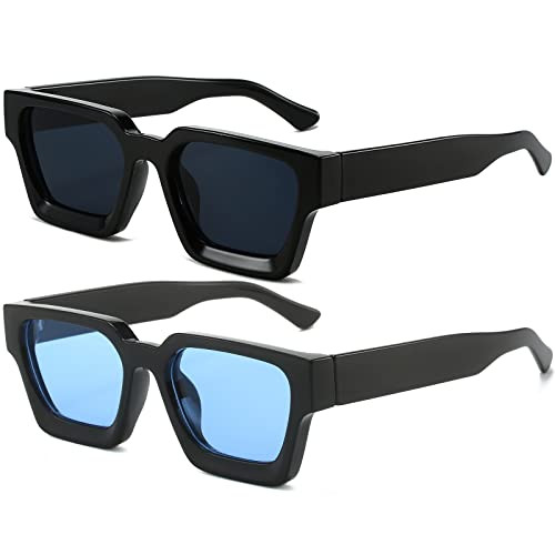 AIEYEZO Square Sunglasses for Women Men Square Thick Frame Sun Glasses Simple Designer Style Shades (Black/Grey + Black/Blue)