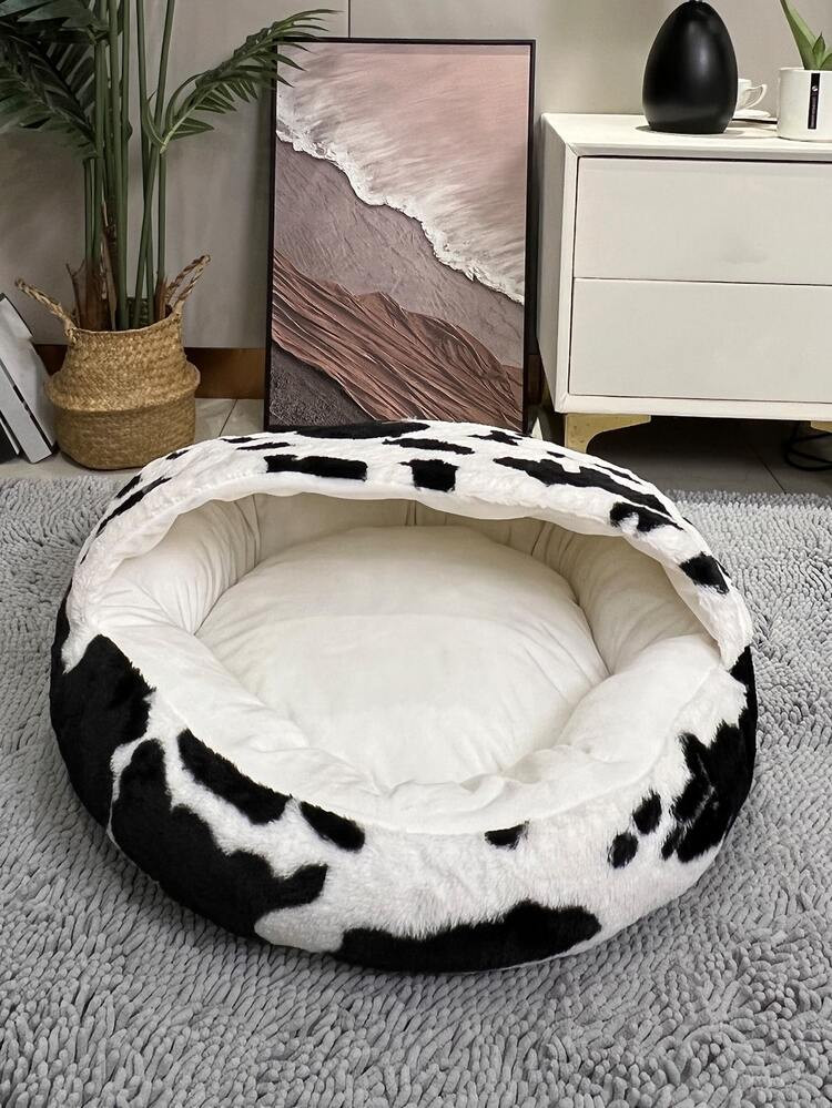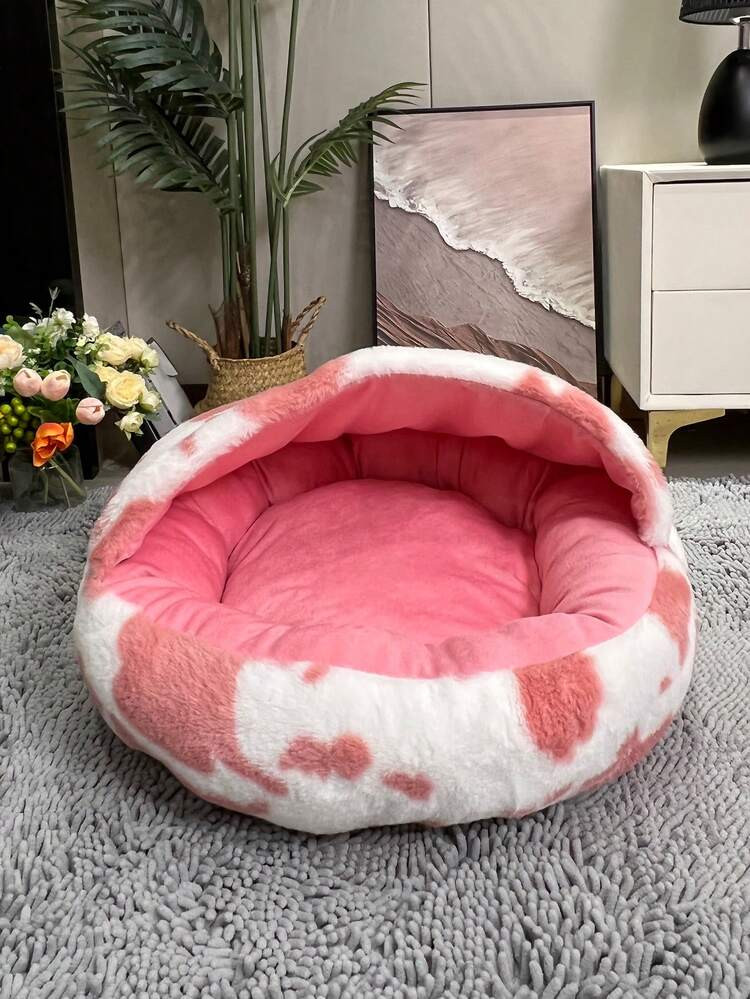 1pc Two Tone Plush Pet Bed For Cat And Dog For Sleeping