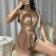Plunge Neck Criss Cross Tie Backless Romper