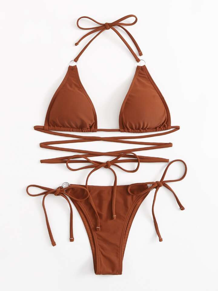 Tie Waist Halter Bikini Set For Summer Beach Vocation