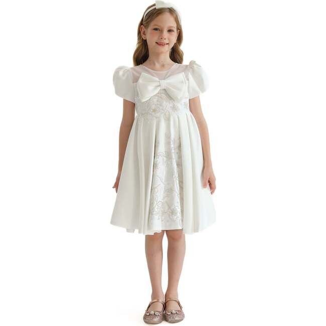 Tulleen | Leona Floral Teacup Bow Dress, Ivory (White, Size 6Y) | Maisonette