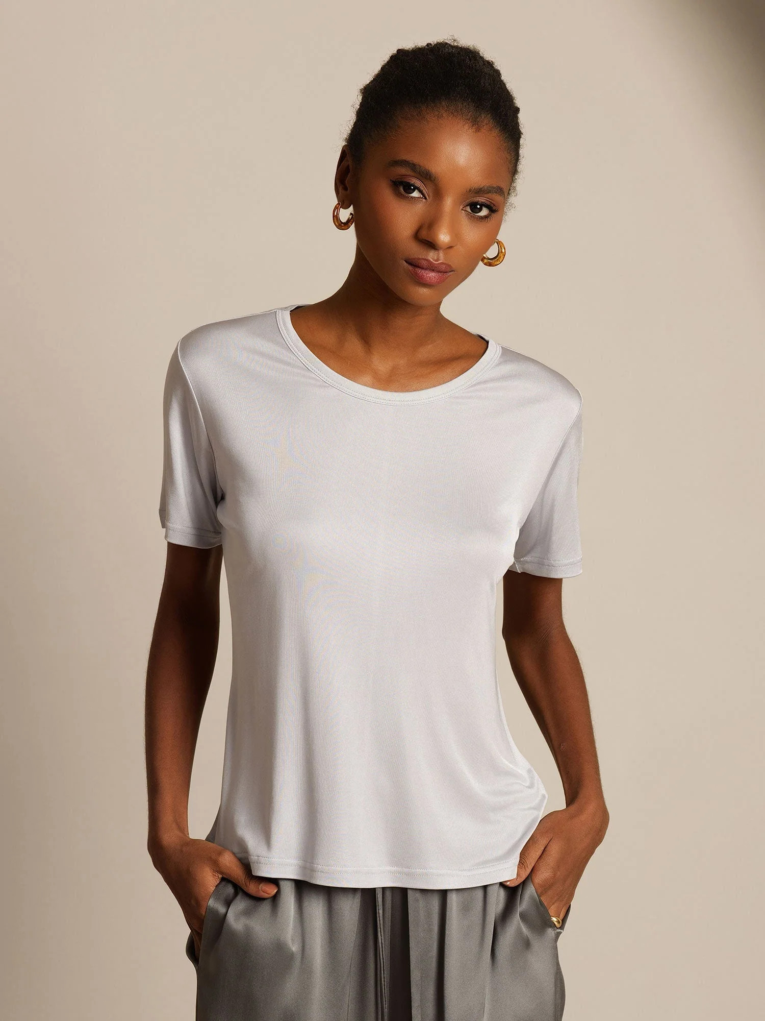 Silk Knitted Round Neck T-Shirt