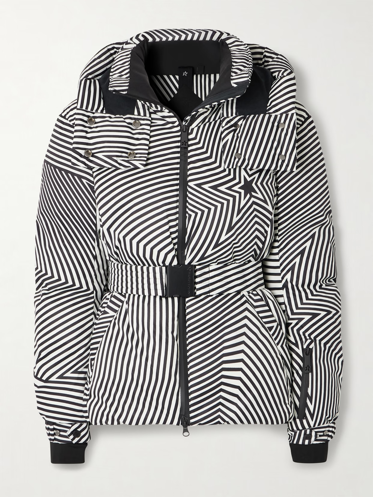 Perfect Moment - Candice Hooded Belted Printed Down Ski Jacket - Black