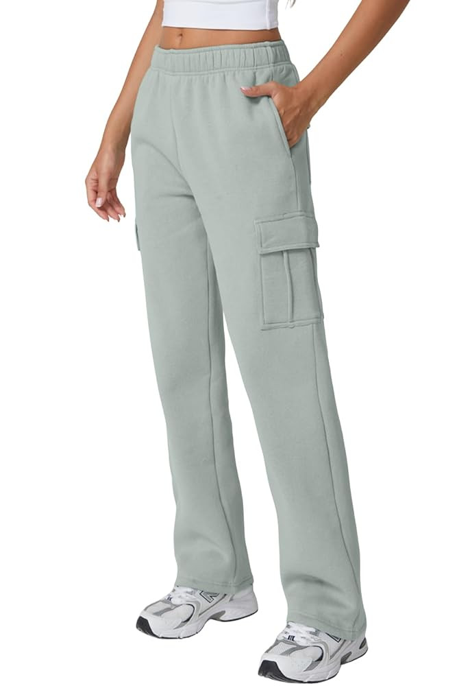 QINSEN Womens Medium Waist Baggy Elastic Waist Sweatpants Casual Fleece Long Pants with Pockets