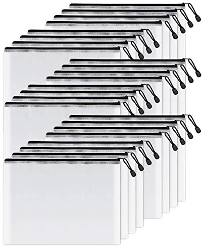SUNEE Mesh Zipper Pouch 10x14 in (Black, 24 Packs), Extra Large Water-Resistant Zip Bag for Schoo...