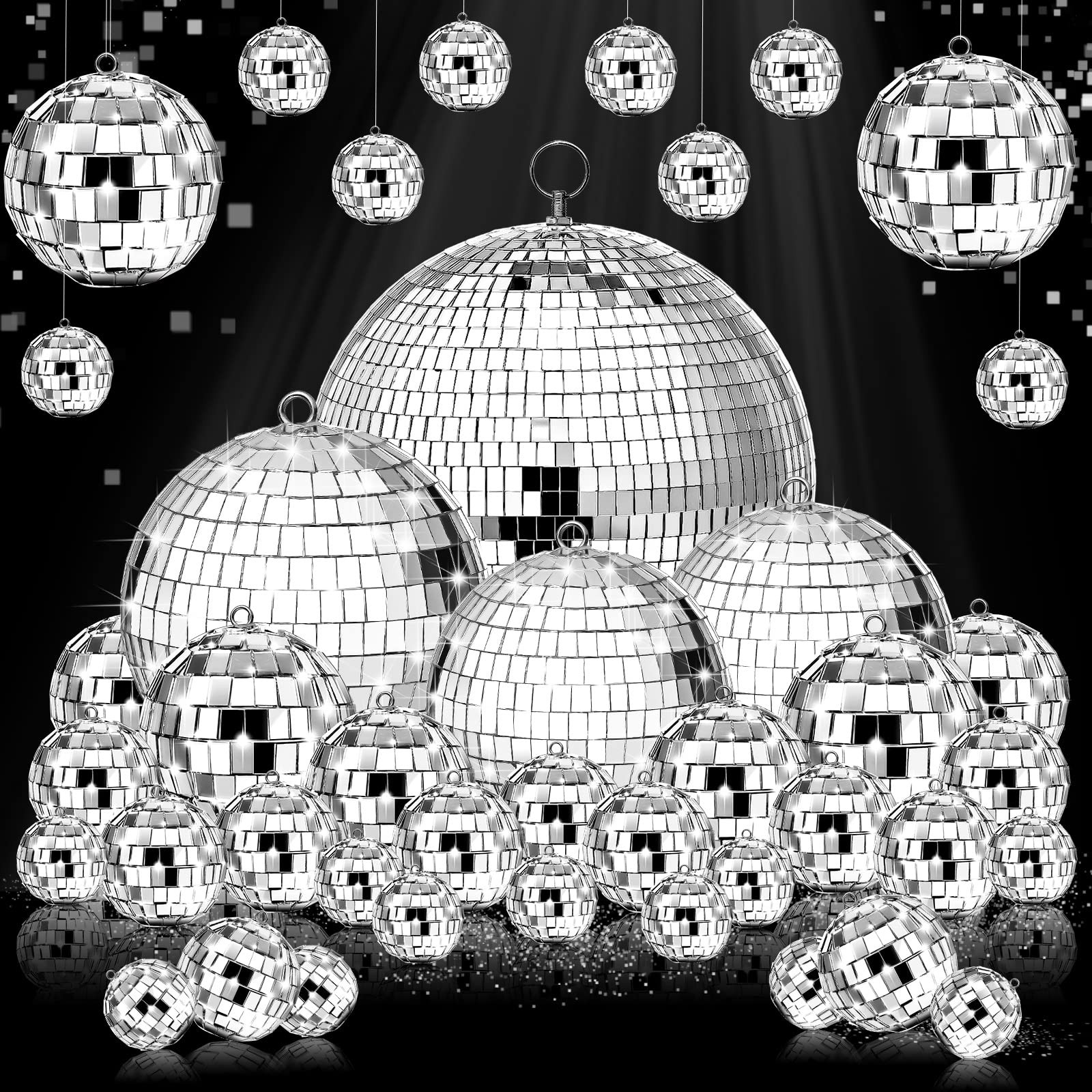 65 Pcs Disco Balls Decorations Assorted Size Disco Ball Ornament Reflective Hanging Mirror Ball M...