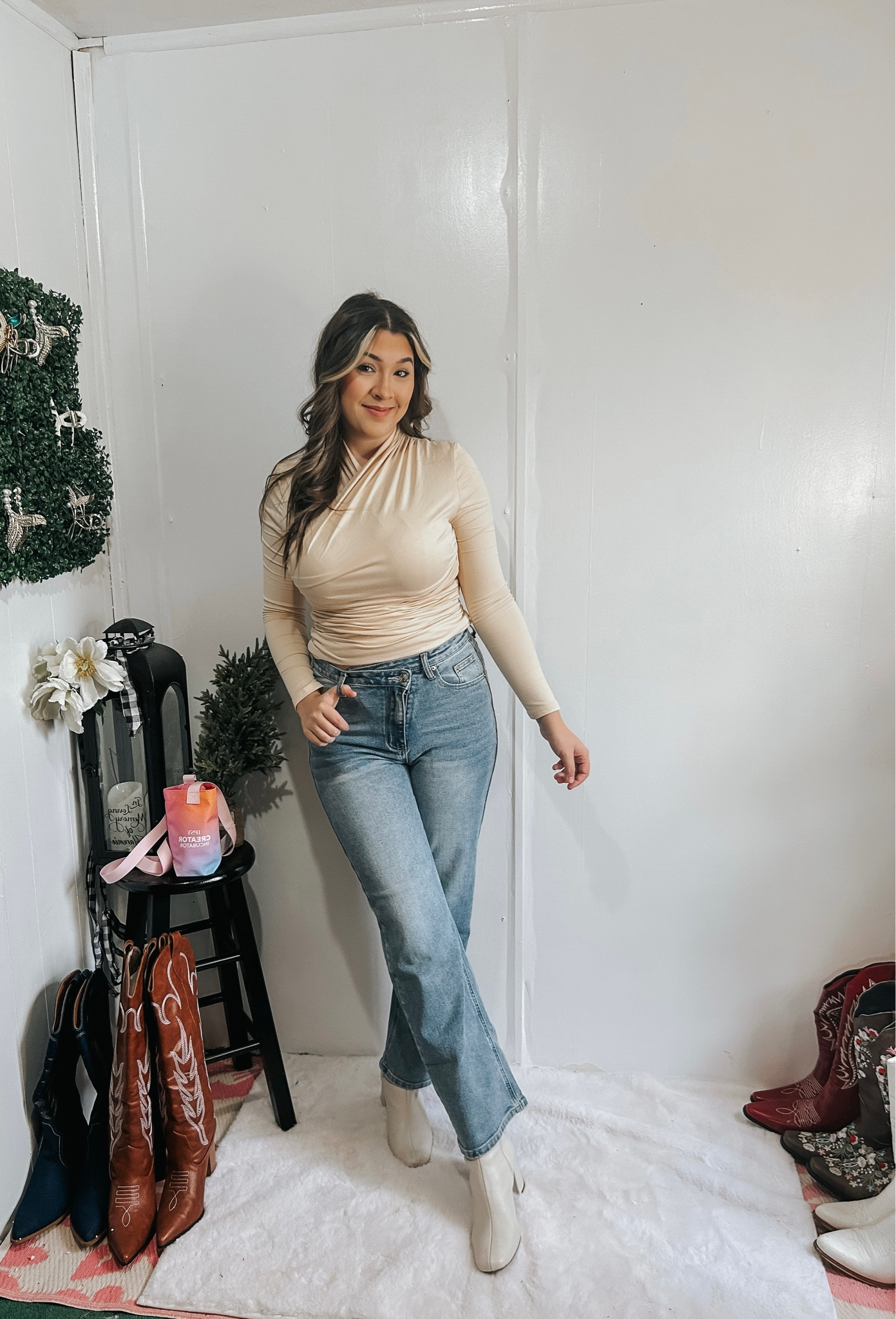 Casual ootd, jeans for long legs, jeans for tall girls, long sleeves body suit, amazon finds, amazon fashion