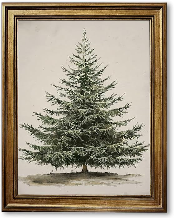 Yermidi Vintage Christmas Tree Wall Art Green Neutral Pine Tree Poster Farmhouse Holiday Minimali...