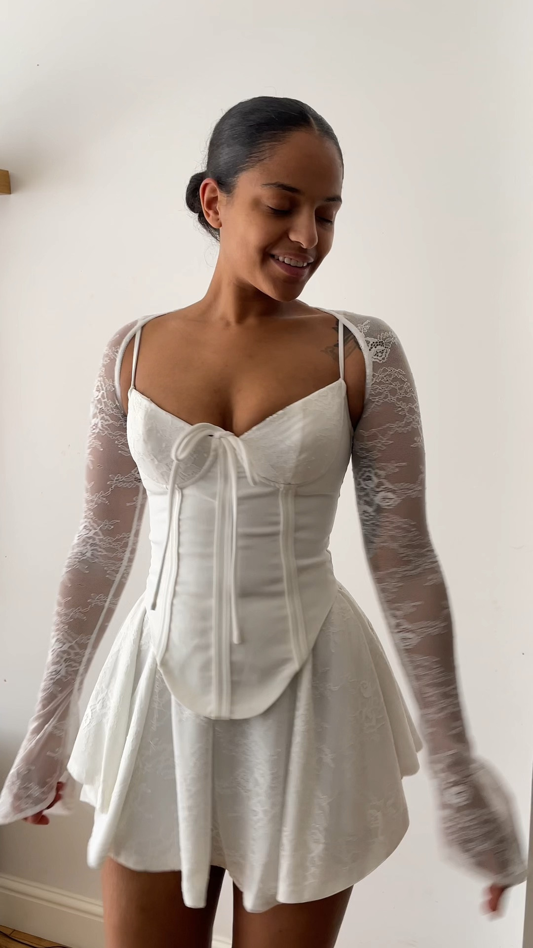 Premium White Woven Bow Detail Mini Dress | PrettyLittleThing UK