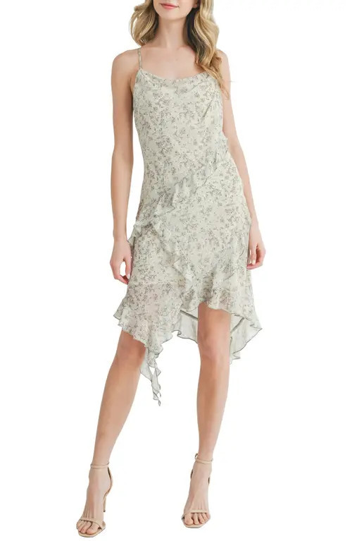 All in Favor Floral Asymmetric Ruffle Dress in Neutral Floral at Nordstrom, Size Medium