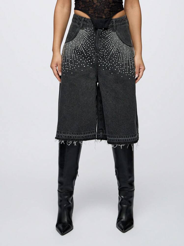 SUMWON WOMEN Rave Embellished Wide Leg Denim Jorts