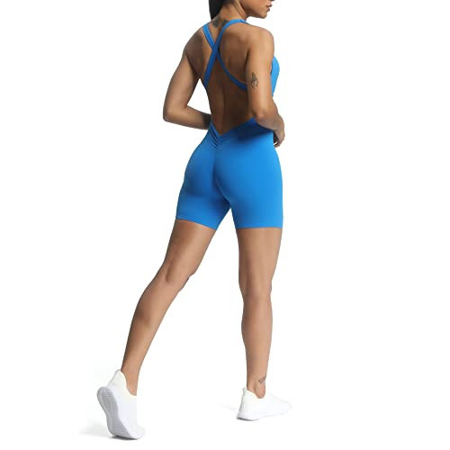 Aoxjox Workout Rompers for Women Brooke Cross Back One Piece Scrunch Gym Yoga Sports Bras Jumpsuit (Directoire Blue, XX-Small)