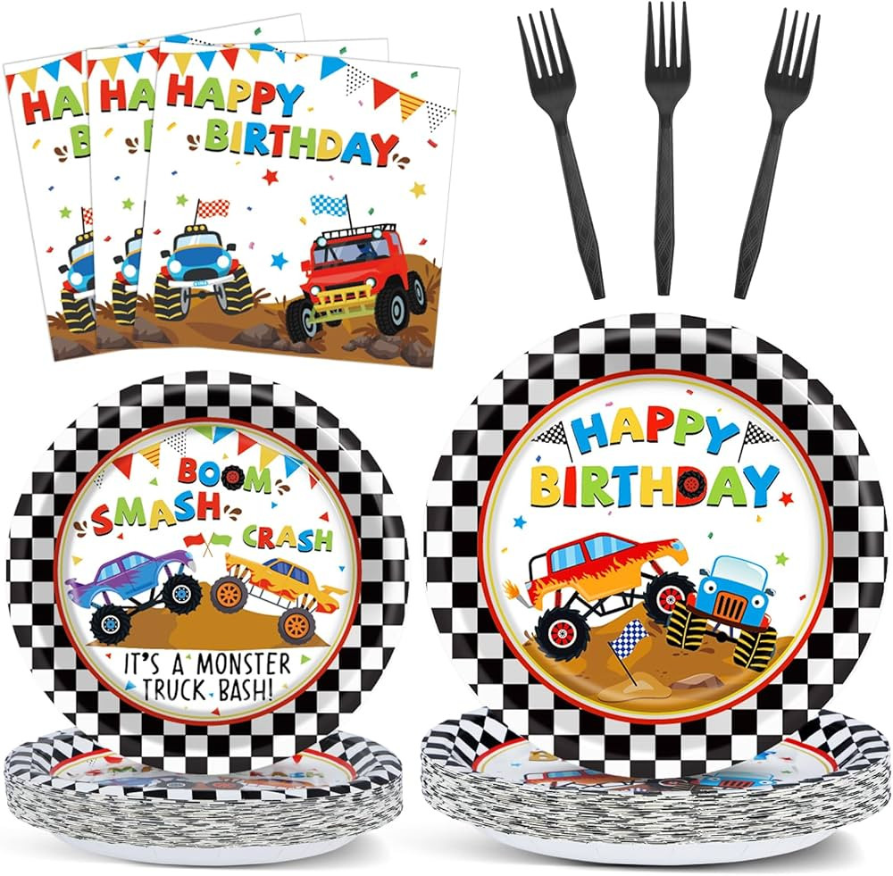 Monster Truck Party Tableware Set Monster Truck Plates and Napkins Monster Truck Party Supplies D...