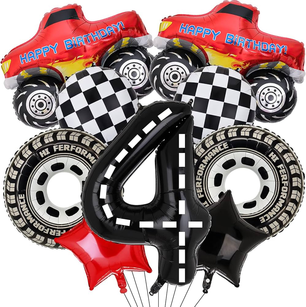 Truck Party Decorations, 9pcs Truck Birthday Number Foil Balloon for Truck 4th Birthday Race Car ...