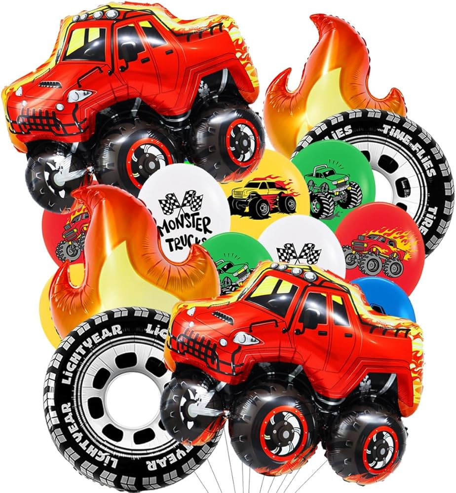 Monster Truck Theme Birthday Party Decorations Monster Truck Balloons Wheels Balloons Fire Balloo...
